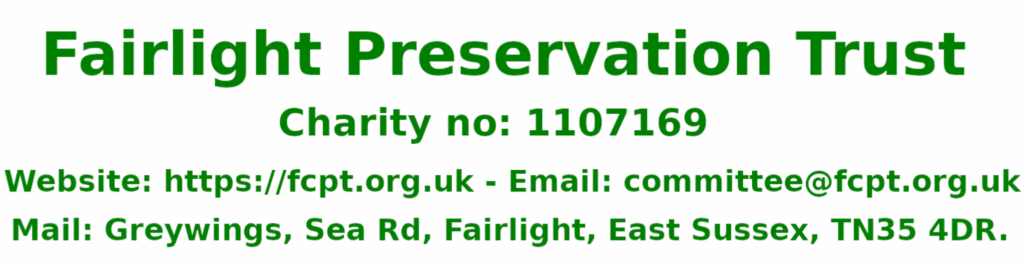Name(s) (required) Address (required) Your email (required) Landline phone (optional) Mobile phone (optional) I confirm that I am a UK taxpayer and that the Fairlight Preservation Trust may claim Gift Aid on all donations I make from this date until I notify you otherwise.Please tick I agree that the Fairlight Preservation Trust may store my details electronically in a password protected file only, solely for the purpose of keeping me informed of Trust business. (required)Please tick Membership is £10 per person, valid for 3 years. Please pay either by cheque made payable to Fairlight Preservation Trust and send it to:- Jill Lewing, 4 Rockmead Road, Fairlight, Hastings, East Sussex, TN35 4DJ. Or, by Bank Transfer:- Sort Code:- 202794 Account No:- 70921319 Please put your name and FPT membership as a reference Please tick if paying by Bank Transfer